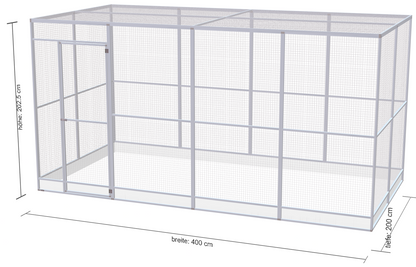 Mit großzügigen Breitenoptionen bietet diese Voliere idealen Platz für Sittiche, Papageien und andere Vogelarten, die viel Raum und Bewegung lieben. Optional können zusätzliche Sitz- und Ruheplätze hinzugefügt werden, um den Komfort für Ihre Vögel zu erhöhen. Das Modell ist vielseitig gestaltet und bietet sowohl für Innen- als auch Außenbereiche die perfekte Lösung.